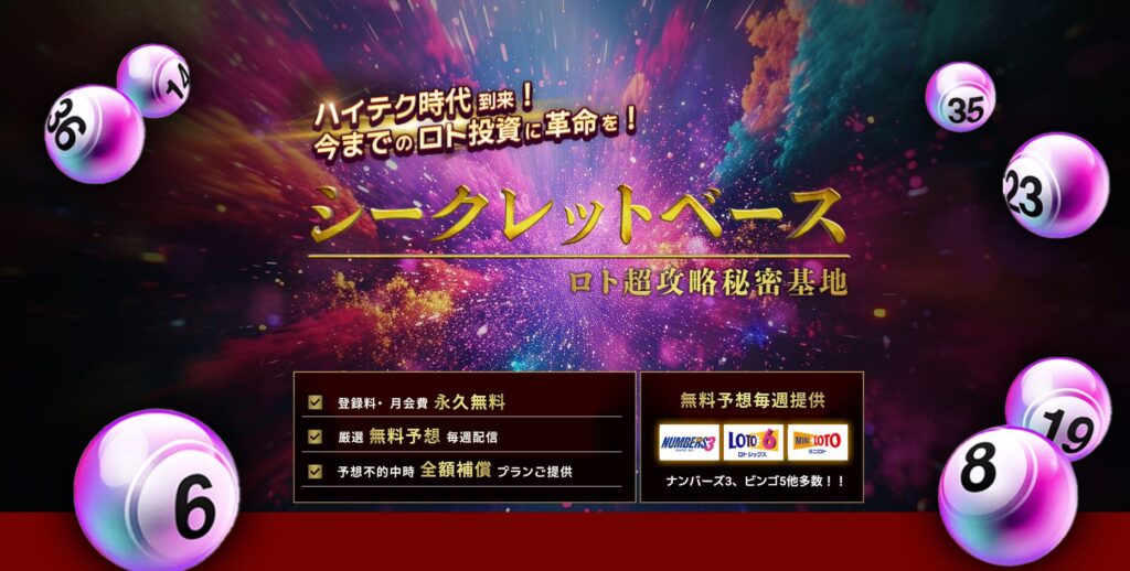 「シークレットベース」は、ナンバーズ予想に特化した老舗サイトで、特にナンバーズの的中実績に定評があります。